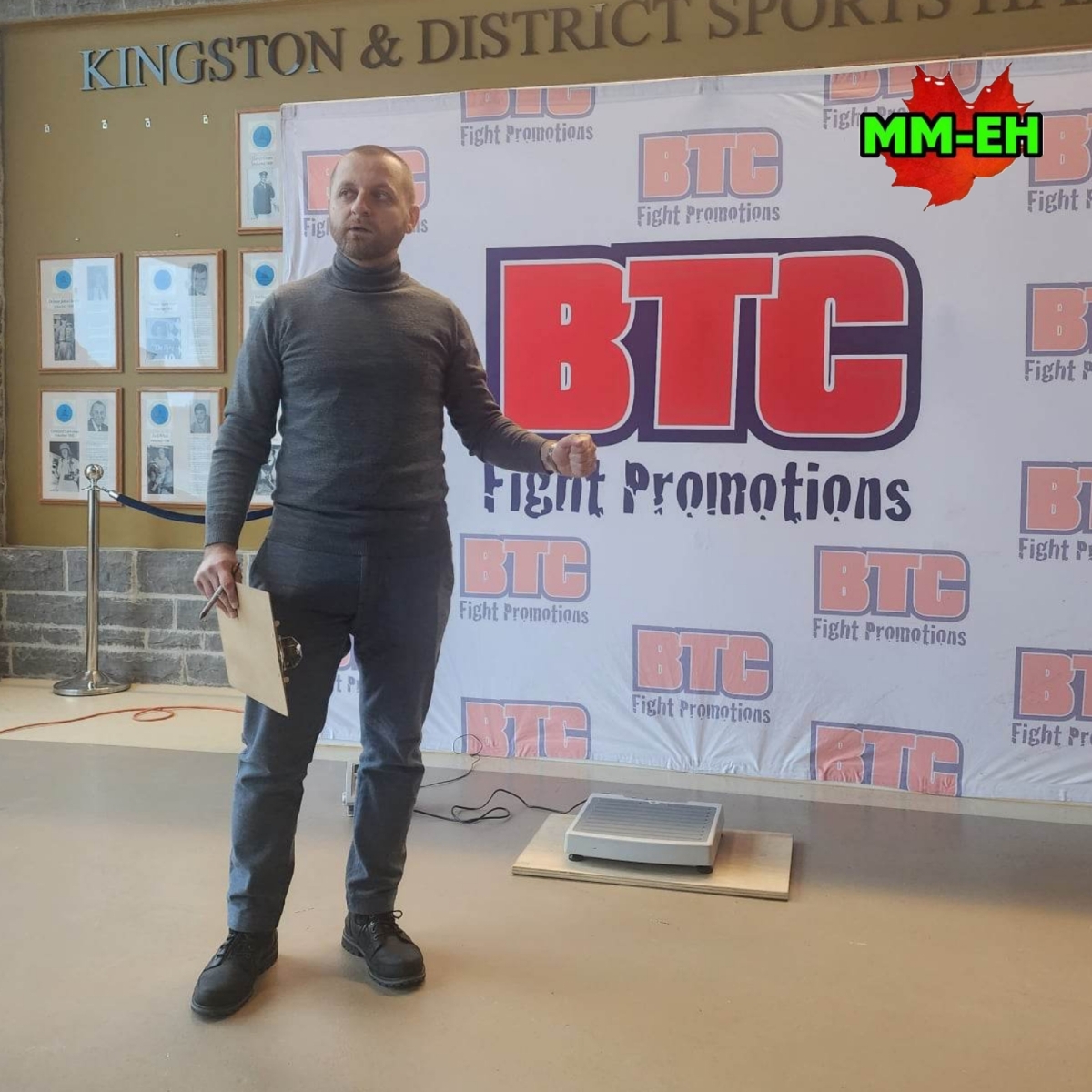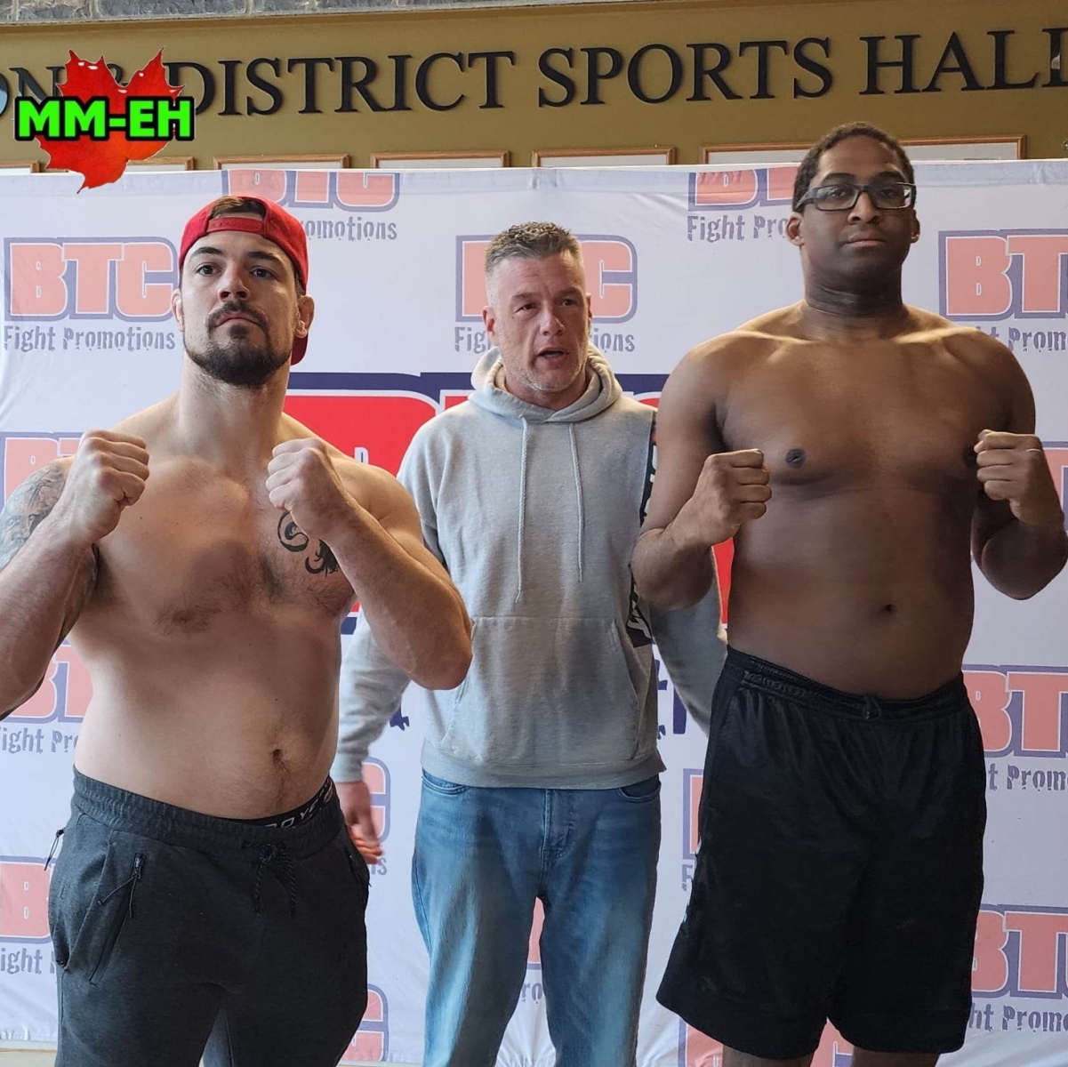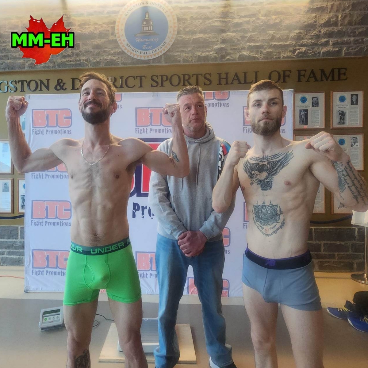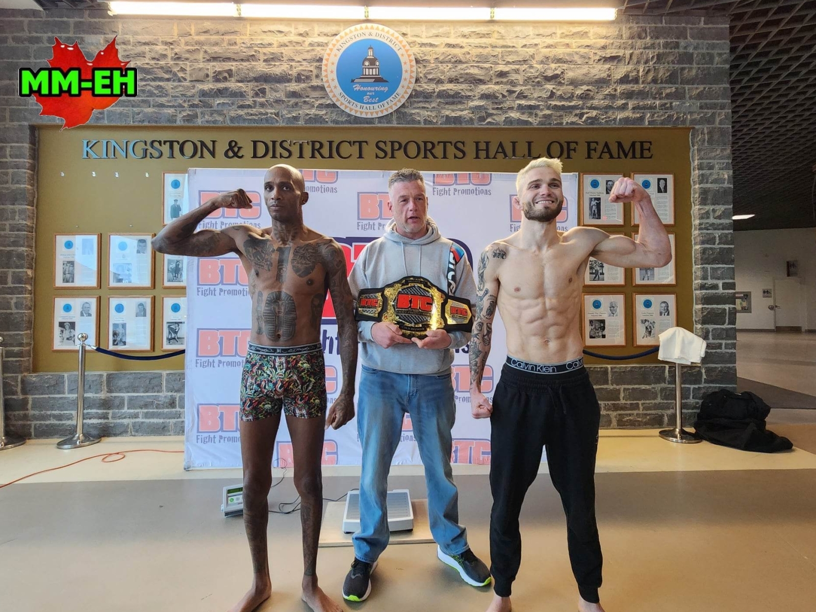 16 professional mixed martial artists stepped on to the scale today to verify their contracted weights for the BTC’s 19th event, set for tomorrow at the Leon’s Centre in Kingston, Ontario.