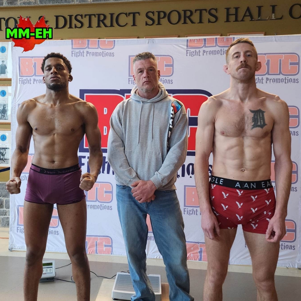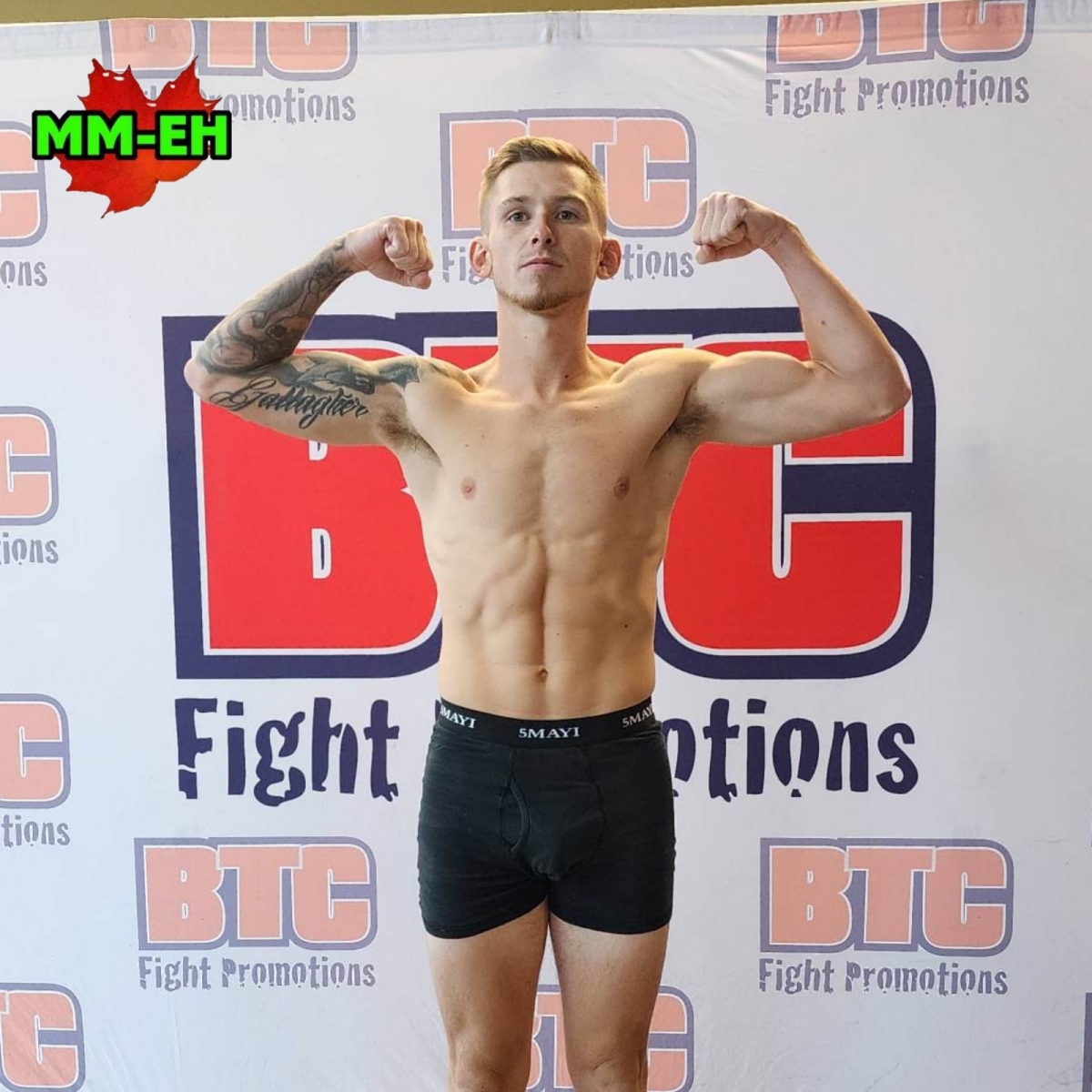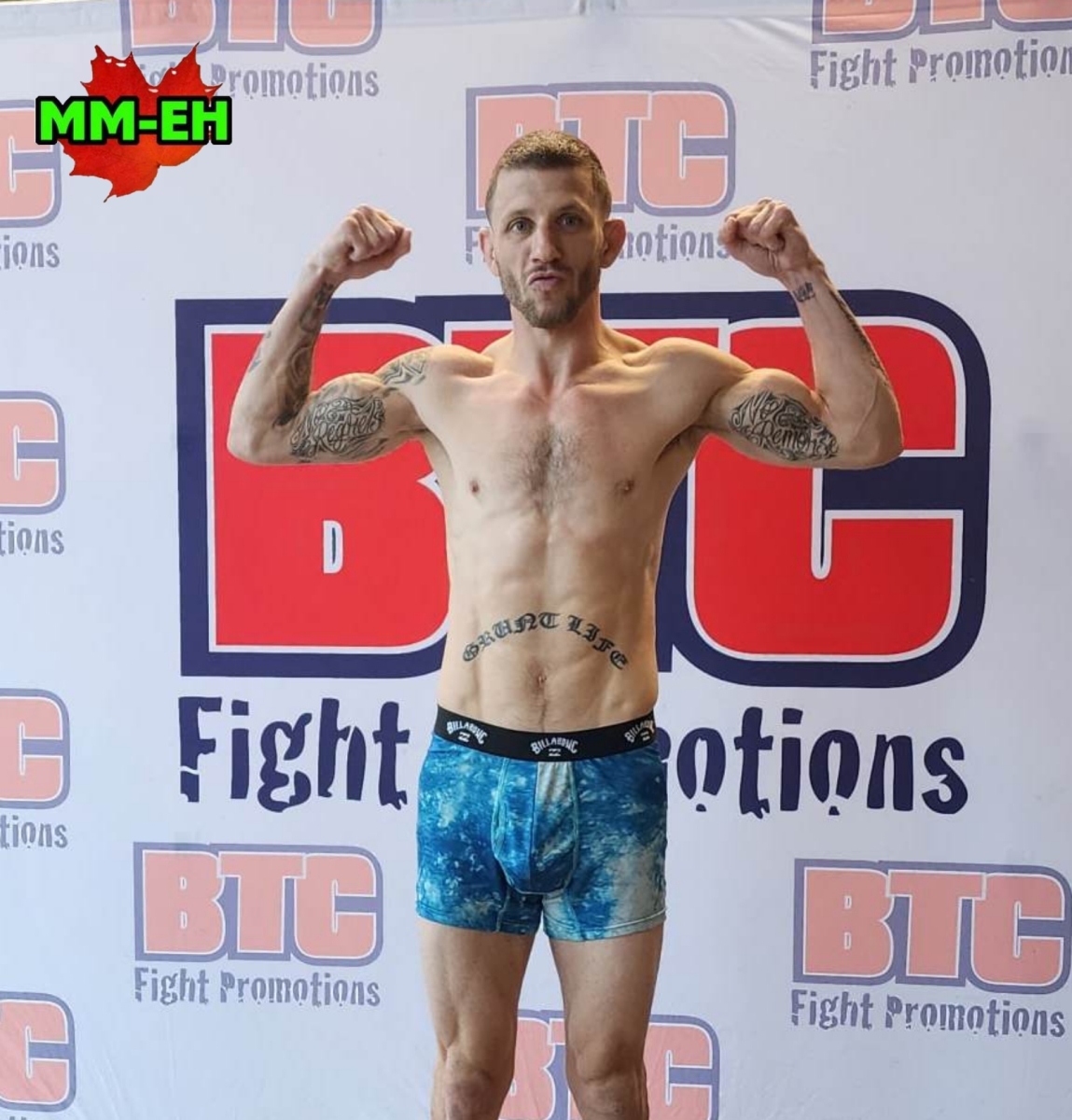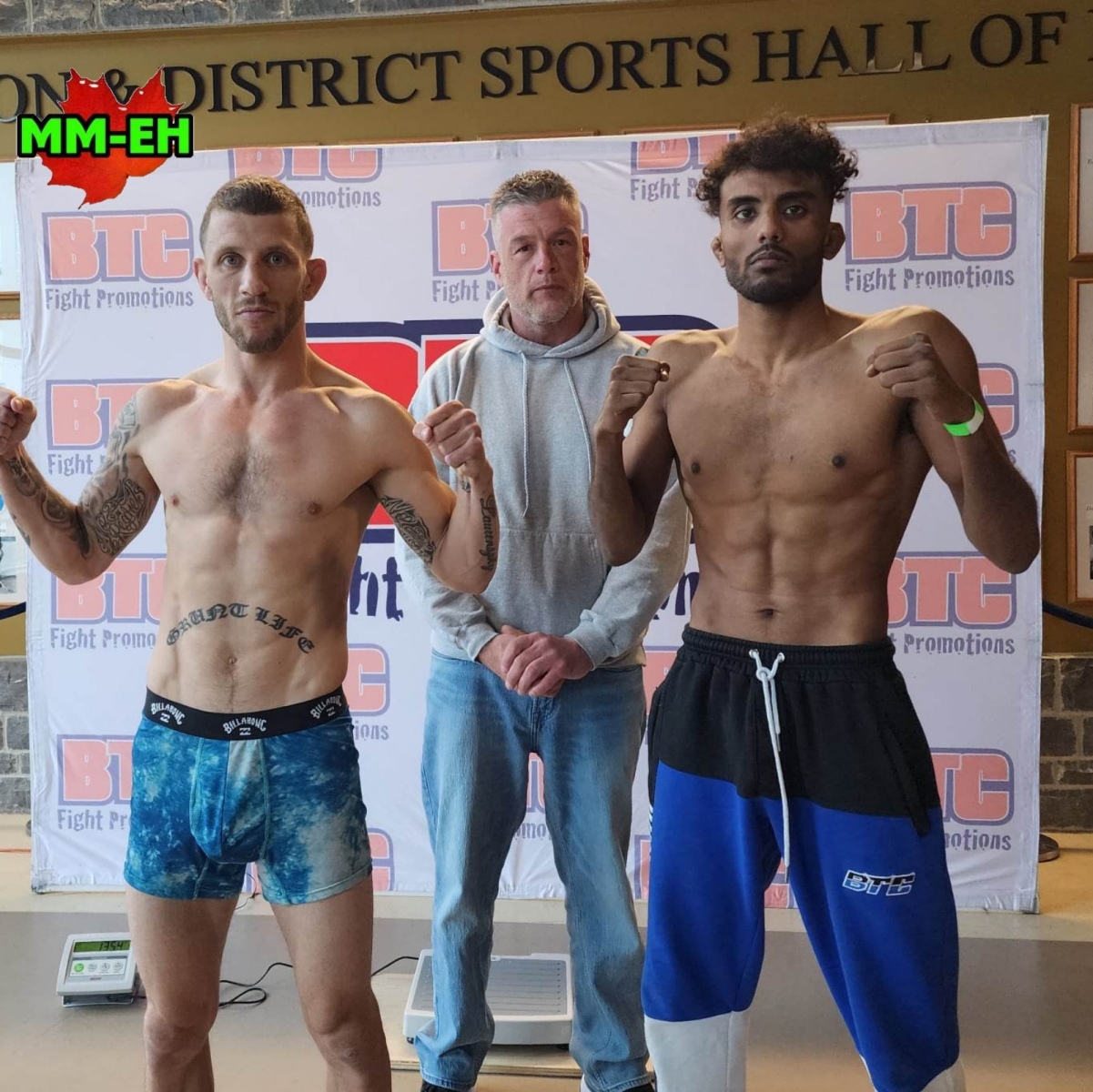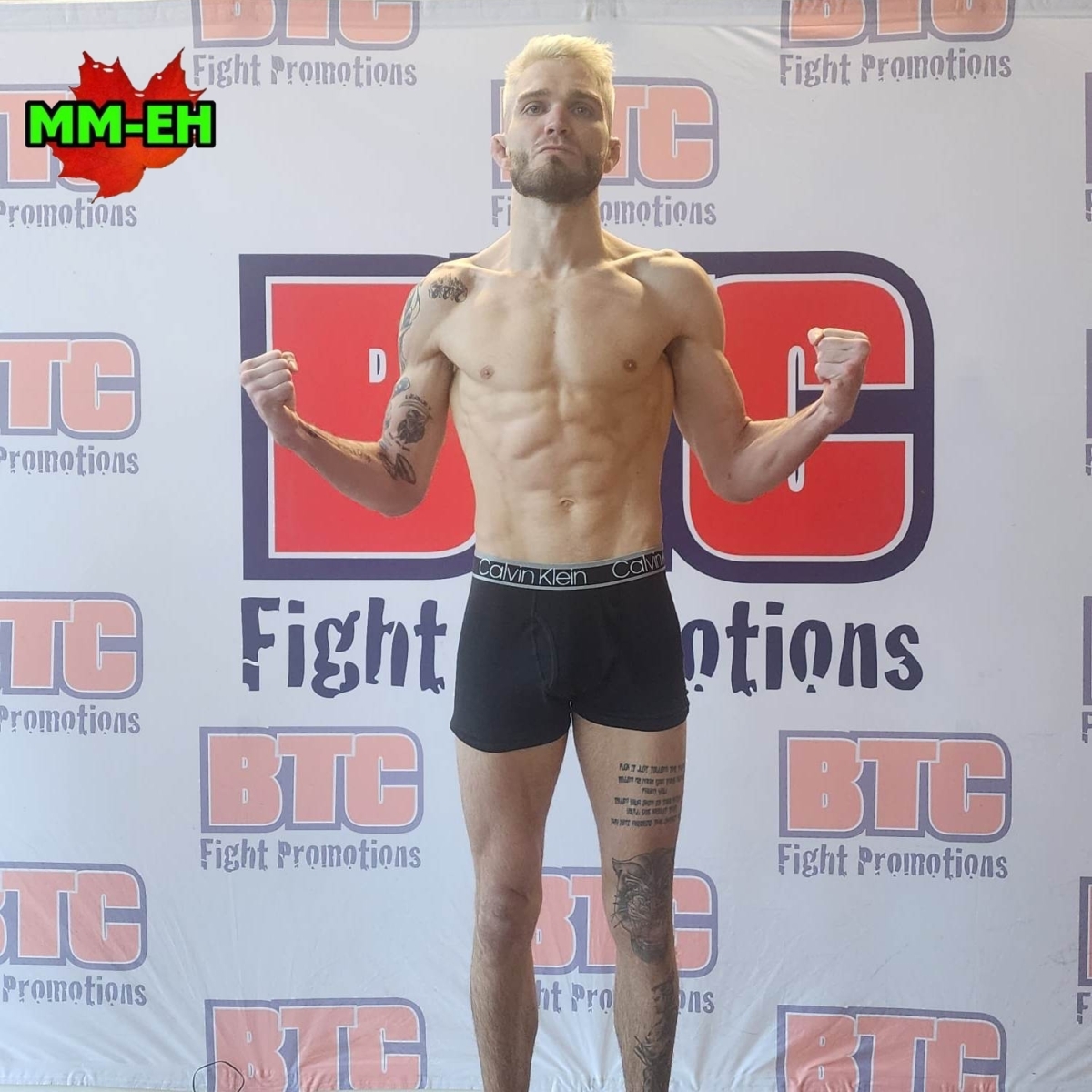 16 professional mixed martial artists stepped on to the scale today to verify their contracted weights for the BTC’s 19th event, set for tomorrow at the Leon’s Centre in Kingston, Ontario.